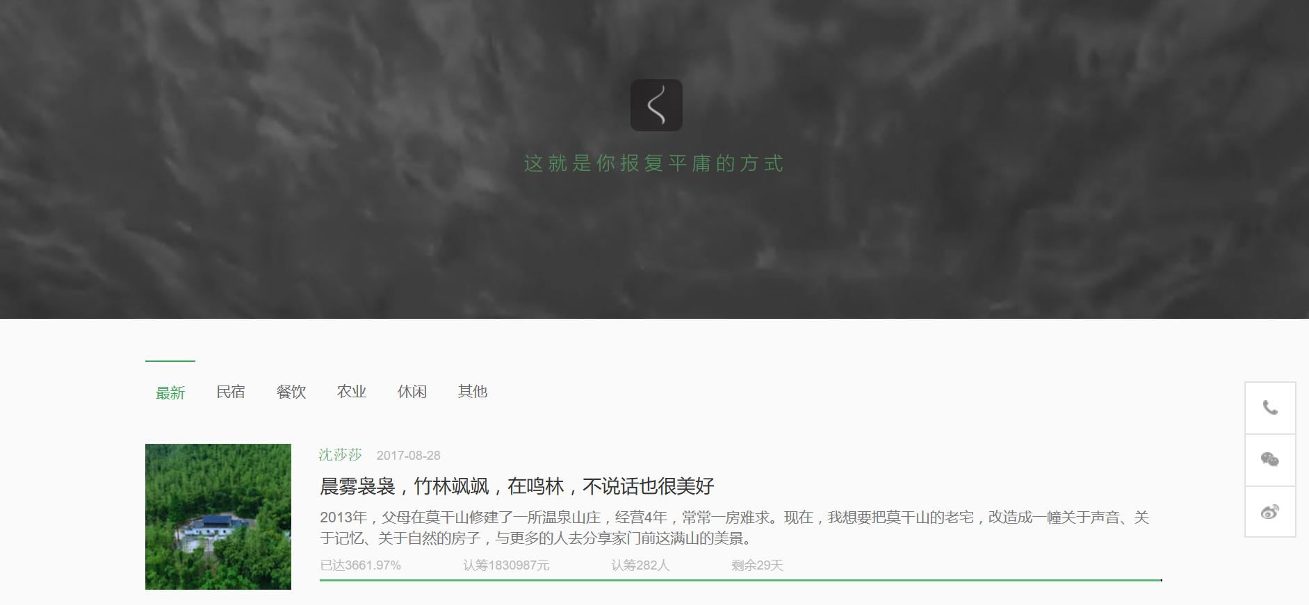 从开始吧的收入结构,也能看出业务发展变化。首先,从整体收入看,虽然众筹佣金仍是主要收入来源,但上述综合服务加上产品销售提成,已占到总收入的三分之一。其次,从众筹认购金额来看,早期民宿占 60-70%,现在餐饮和休闲+农业板块已经占到 50%。