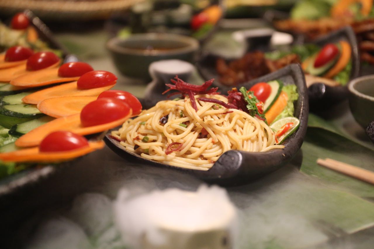 考虑到顾客的选择性,整体菜品的数量达到了110道,食材来源80%以上从云南空运。一年四季,会应季推出主题菜系:春天的花、夏天的菌子、秋天的水果、冬日的野菜。针对商务客户,可以定制云南菜三大宴席:佤王宴、长街宴和孔雀宴。