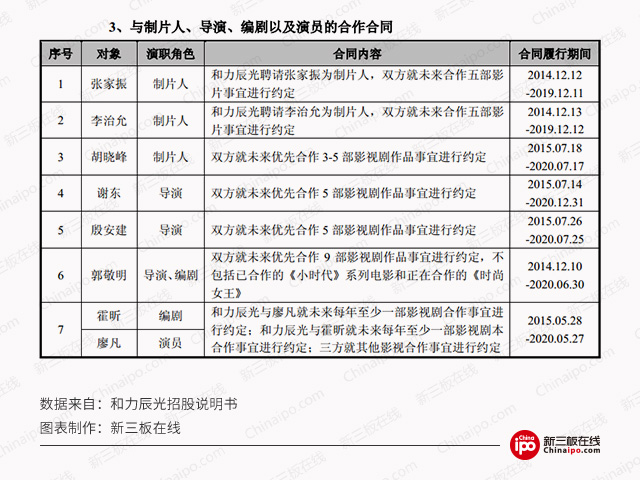 不得不说,这家公司也正在试图转型和“去郭敬明化”。招股说明书显示,公司将与制片人胡晓峰、导演谢东、演员廖凡等达成合作。2017年中报披露,正在进行的影视剧作品中,也少有郭敬明的痕迹。
