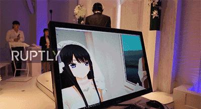 为了提高女友的智能含量,现在还有各种辅以VR设备的玩法,例如日本推出的VR婚礼,宅男可以体验到可爱的虚拟新娘。