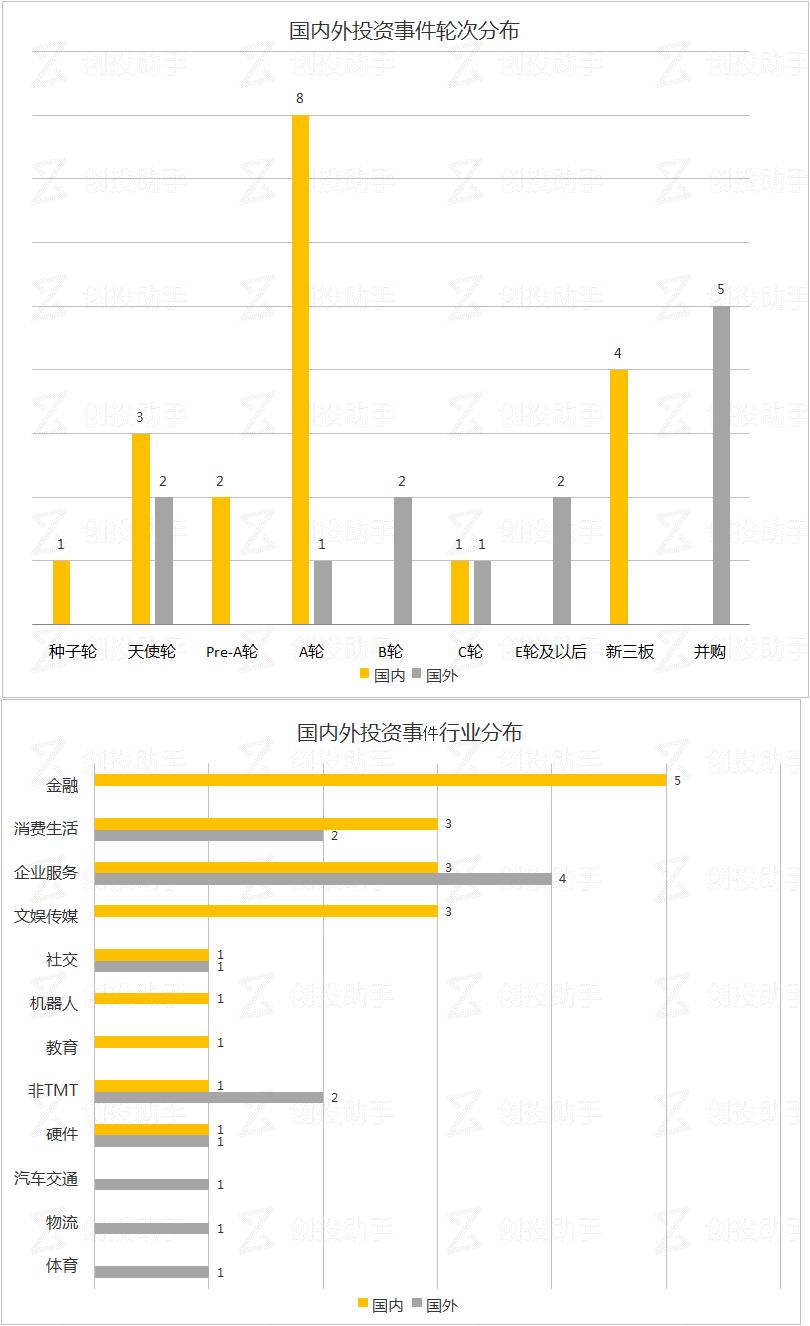 本日国内外共有32起融资事件,分布在12个行业中。国内19个项目获得融资,国外13个项目获得融资。