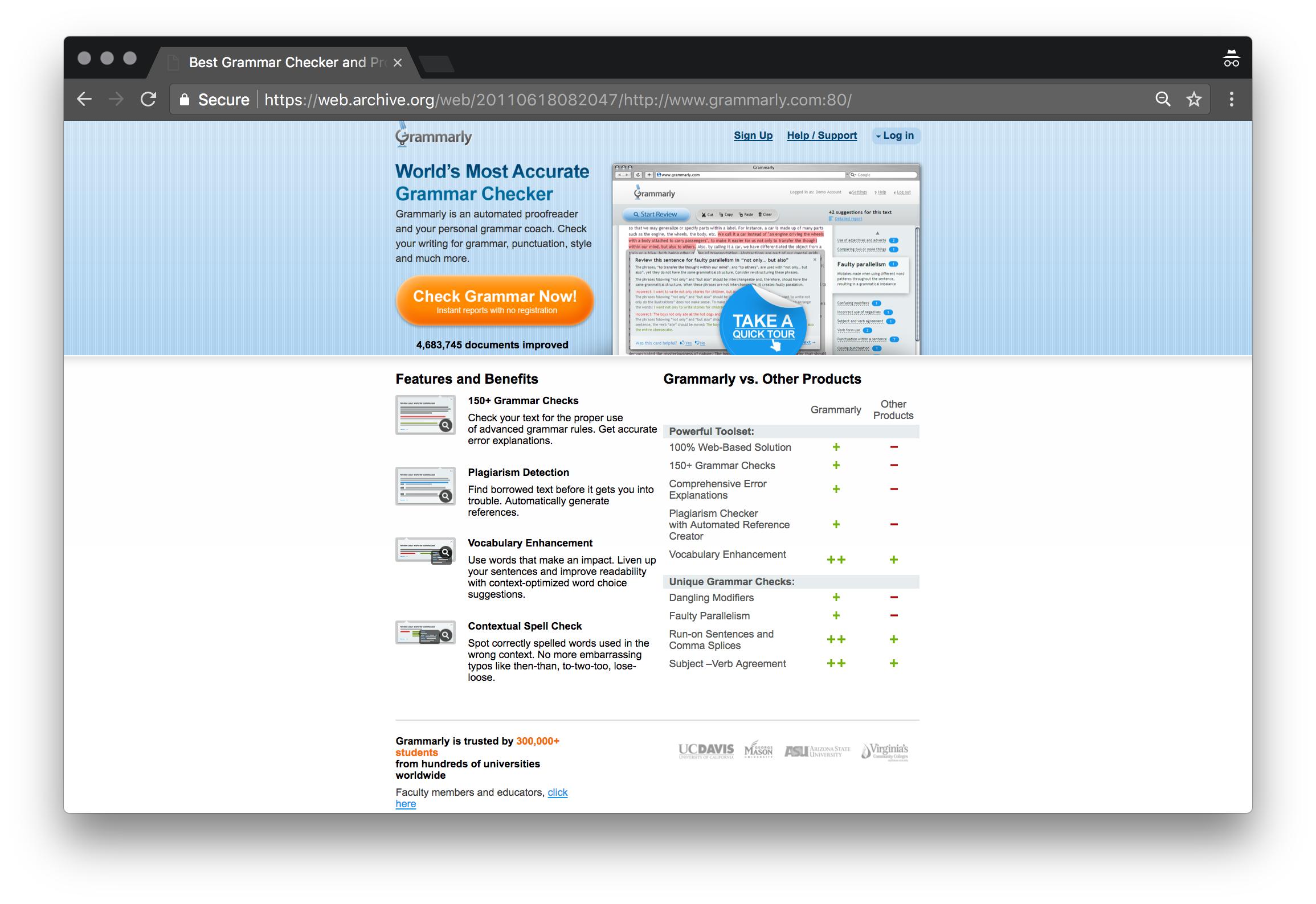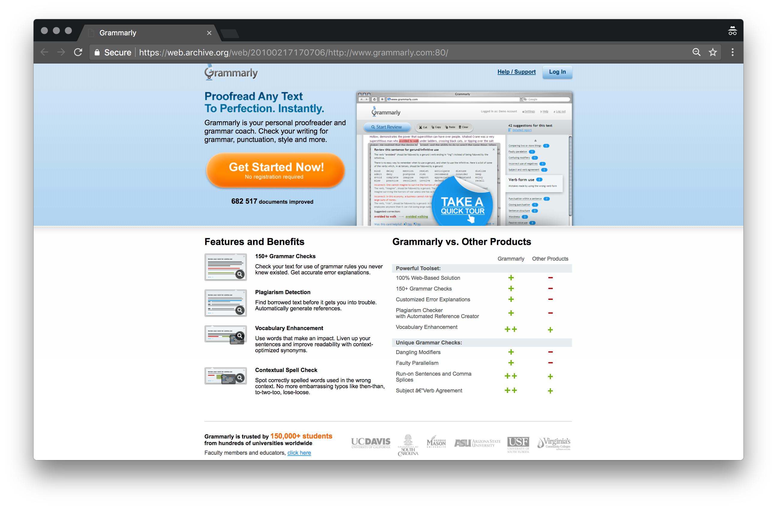 2010年:Grammarly第一次改进产品,它的登录页面专注于学生和教育。当时,Grammarly已经有了超过15万名注册用户。