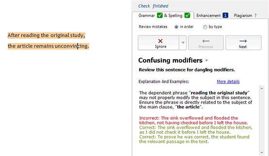 Grammarly的早期产品是一个简单的网页应用程序。你可以将文本复制粘贴到网页编辑器中,然后点击“开始查看”按钮。该产品就会把文本中的错误都给标注出来,并提供写作改进建议。与只扫描明显的拼写和语法错误的微软Word的拼写检查程序不同,Grammarly处理了所有的事情——从文字的拼写到文章的整体风格。