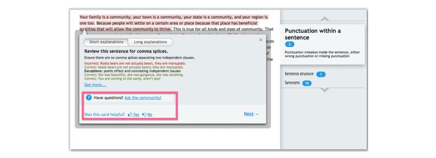 我们的系统并不完美,所以我们增加了对改进建议是否正确的投票。我们今天看到的Grammarly,,完全是我们用户贡献的结果。
