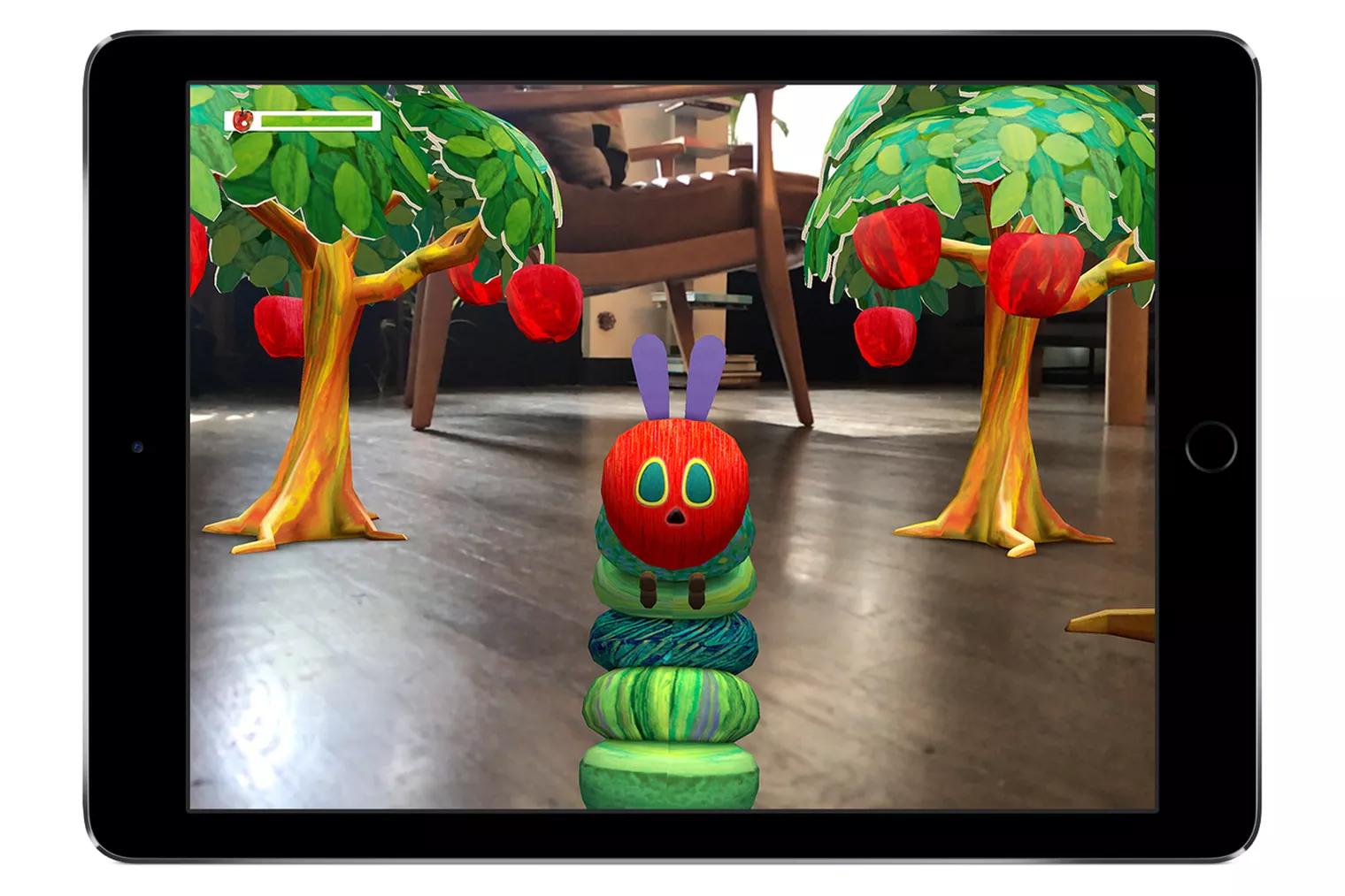其他ARKit应用程序可能会更简单,如The Very Hungry Caterpillar和Giphy World AR应用程序。前者能让一条毛毛虫在你的投喂之后变成蝴蝶,后者则是能让使用者在现实世界沟通的时候加上GIF图。