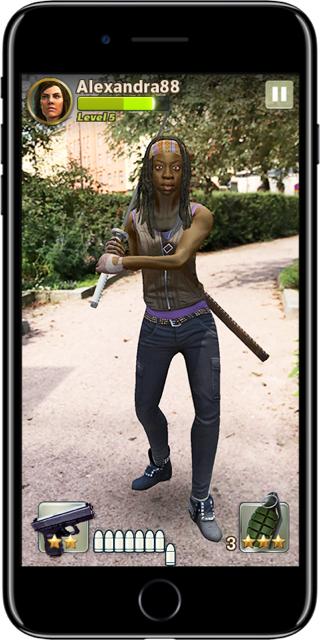 AMC的”The Walking Dead”AR应用程序被称为“我们的世界”,由芬兰的游戏工作室Next Games开发。该游戏应用了ARKit的一个功能ARPointCloud,可让开发人员隐藏AR环境中的物品并能让它们从固定位置浮现出来,形成僵尸每隔一段时间就从玩家周围的角落出现的效果。