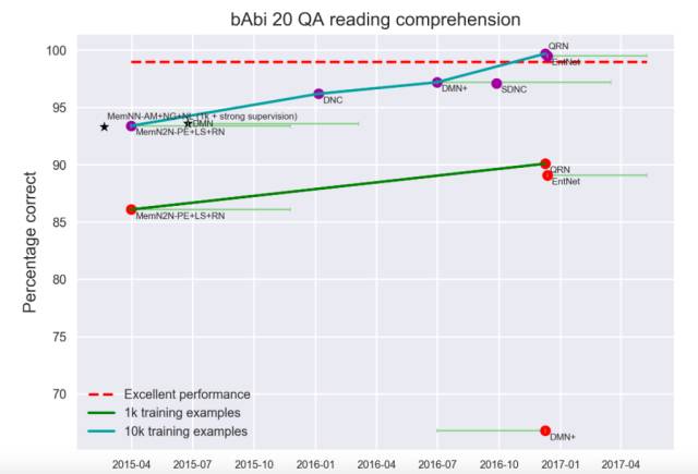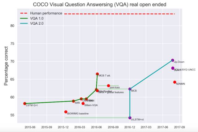 EFF的数据库包含了从2012年起图像识别快速进展的图表,还有一个图,是关于让软件理解儿童读物的测试,这能让我们了解人类和机器在这一任务上的差距。 “ AI指数”项目正在努力绘制AI子领域趋势图,将最受研究员关注的趋势表现出来。