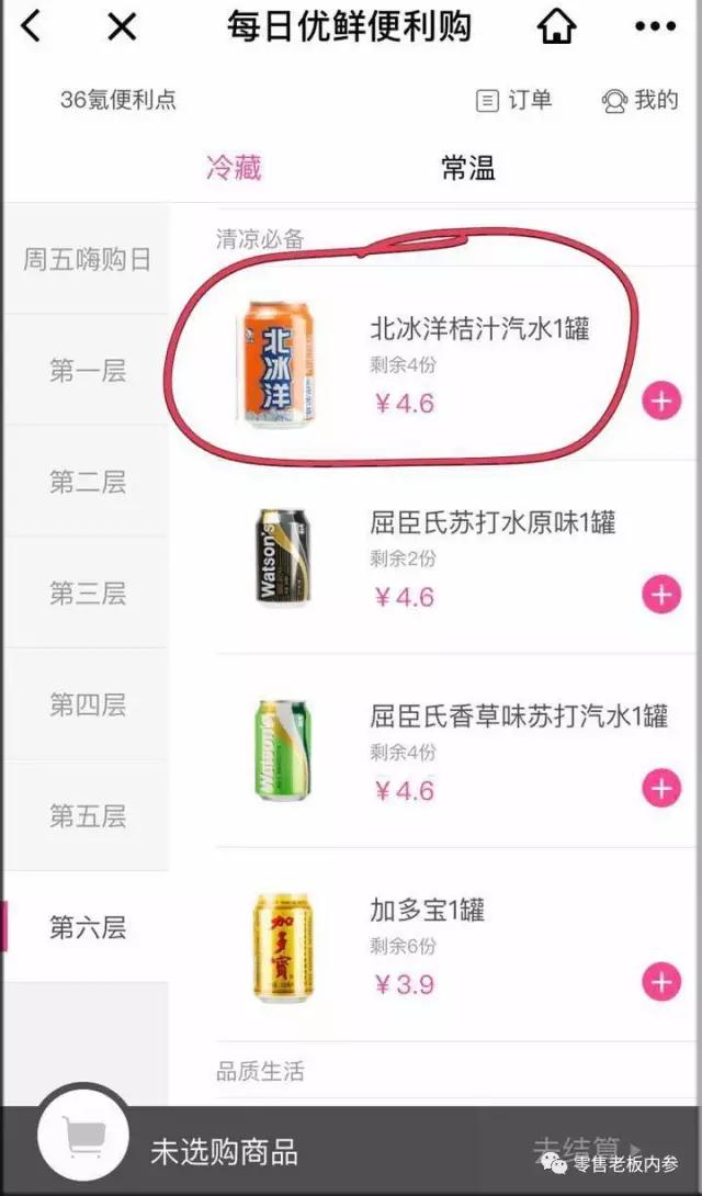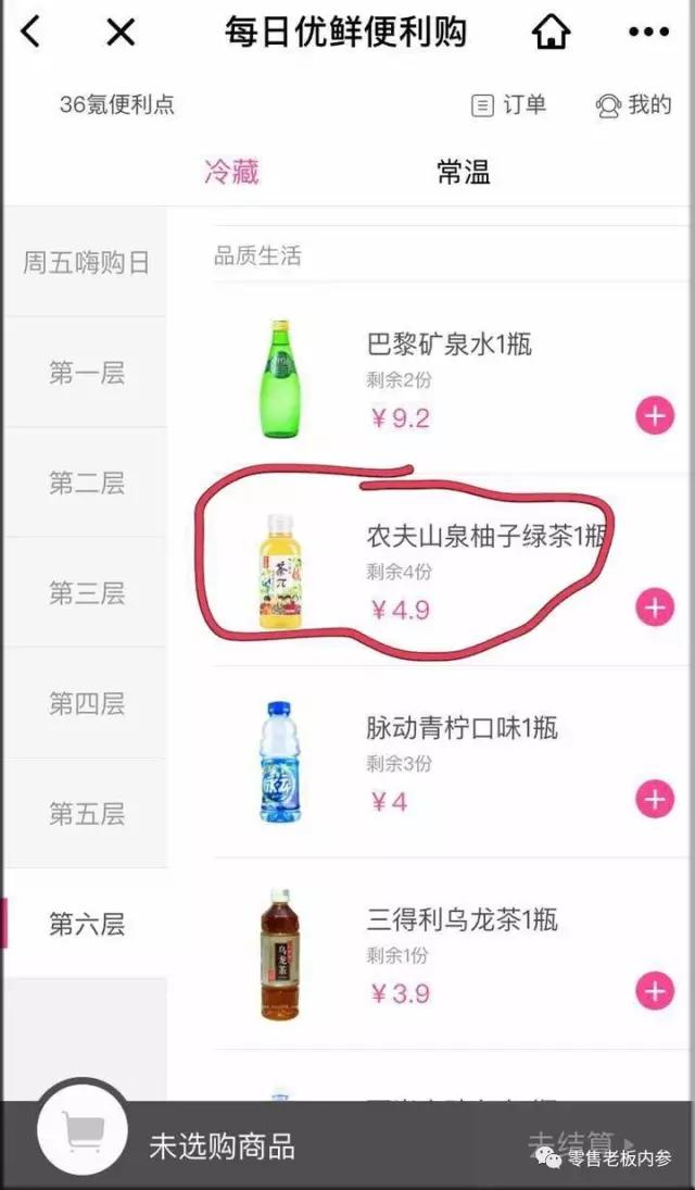 例如每日优鲜的北冰洋桔汁汽水售价4.6元,零食e家则为5元,前者的农夫山泉柚子绿茶售价4.9元,而后者则售价5.5元,甚至每日优鲜便利购的商品价格低于写字楼下边的传统便利店。