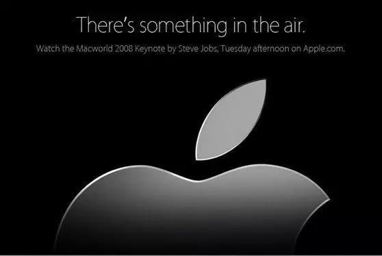 2008年苹果发布会的邀请函上赫然写着“Theres something in the air”的字样,而这一标语同随后发布的超薄Macbook Air也十分契合。
