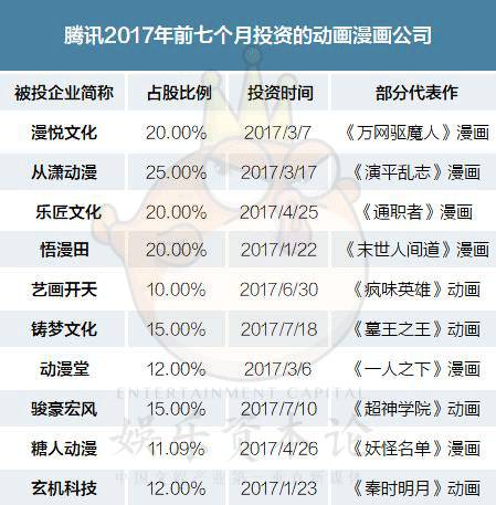 网络漫画公司「徒子文化」获腾讯数千万融资,腾讯今年投了11家动漫公司