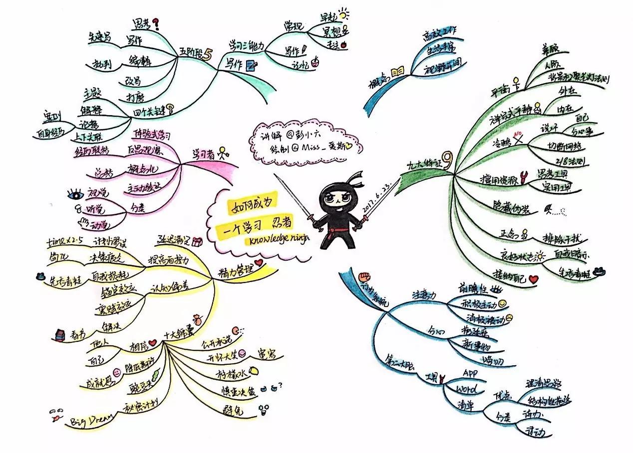 很显然用不同的色彩,更能激活右脑的创造性思维,所以在画思维导图的时候,推荐大家把每一个分支涂成不同的颜色,色彩用得越多,你右脑的发散性思维会越来越活跃。