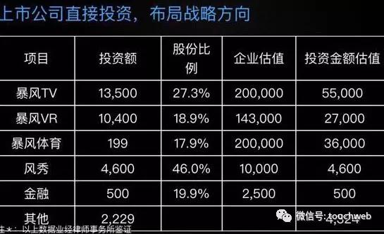 其中,暴风集团对暴风TV占股为27.3%,对暴风VR占股为18.9%,对暴风体育占股17.9%。