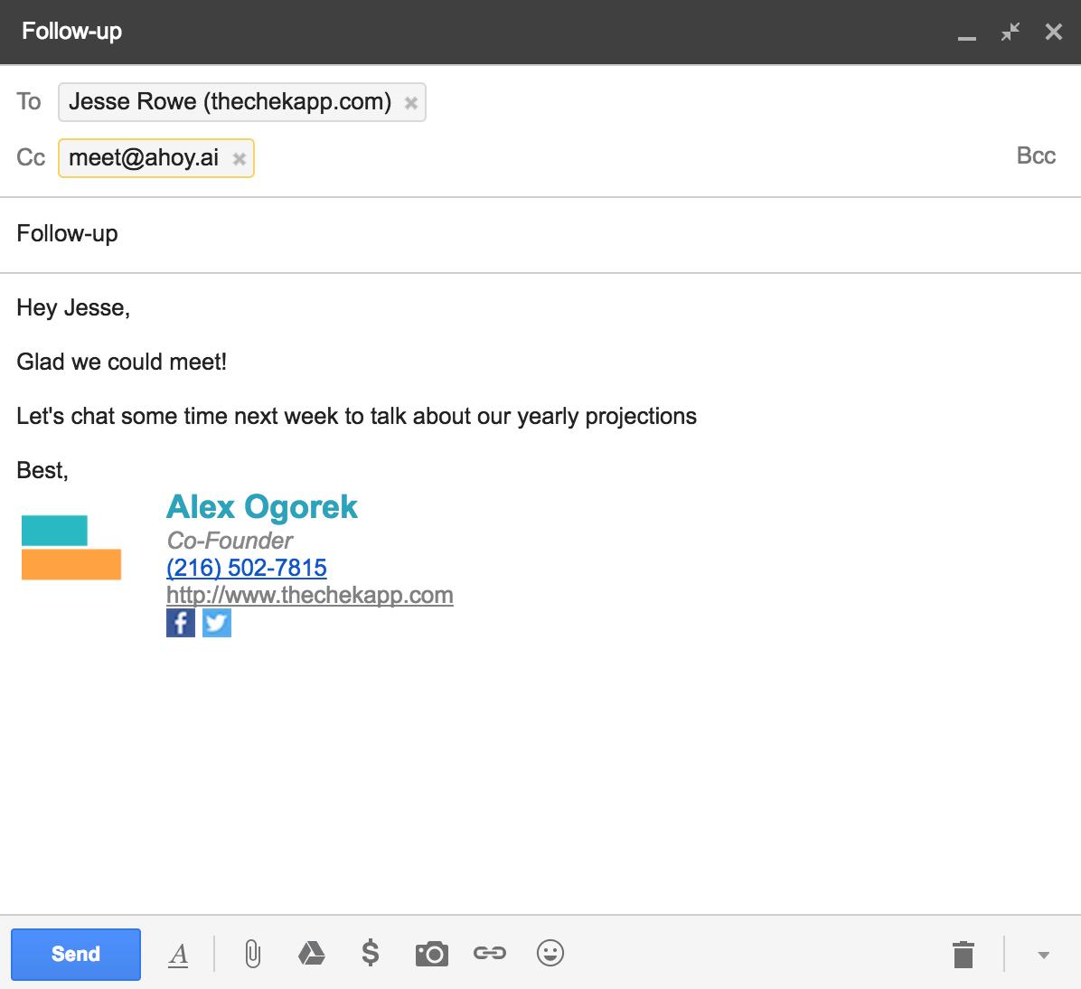 而Ahoy.Ai只需要你发一封email或者一个Slack信息就可以完成任务,流程明显要简化一些。 现在,有几百个用户正在使用这个机器人。