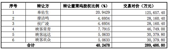 根据《评估报告》,蜜莱坞按照资产基础法评估的股东全部权益价值为11.25亿元、按照收益法评估的股东全部权益价值为 60.60亿元,采用收益法评估结果为最终评估结果,即蜜莱坞评估确定的股东全部权益价值为60.60亿元。 参考上述评估结果并经本次交易各方充分协商确定,蜜莱坞资产的交易价格为28.95亿元。