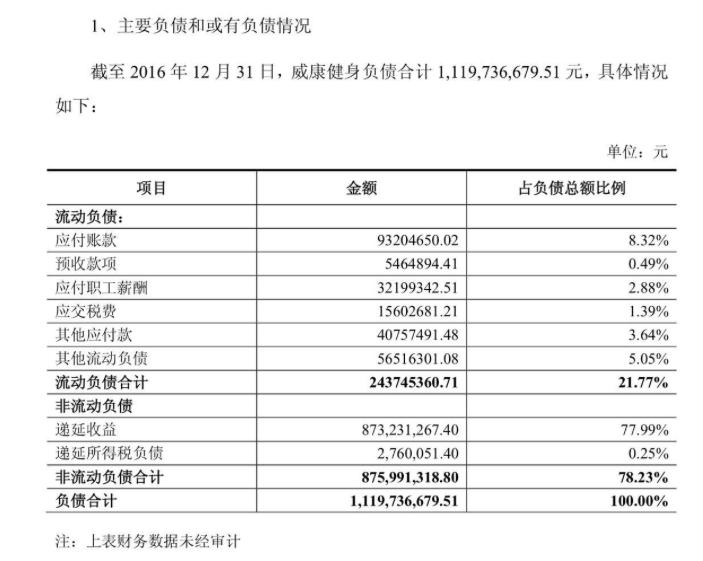 事实上,威尔士并购失败的传闻早已有之。业内人士分析,威尔士健身预付费和私教盈利占收入比重过大,占90%。其中预付费部分归属母公司资产负债,实际归属母公司股东的净利润相对较低,资产负债率过高。
