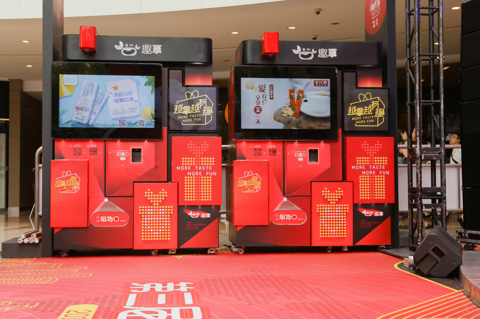 不难看出,相较于自动售货机,趣拿在体验机上设置了更丰富的细节和功能,前者侧重于传统零售,而后者更侧重于互动体验。这意味着需要投入更多的精力在技术研发和日常运营之中。同时掉落两样产品(掉A送B),在排队人多的时候提高转速,背后是软硬件持续不断的升级。而在运营的过程中,需要不断根据数据进行调整,考虑产品的充足性、平衡各种各样的关系,提高每台机器的利用率。