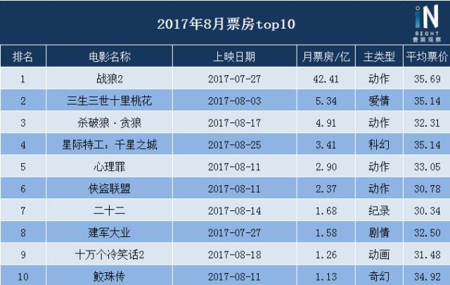票房超过50亿的《战狼2》无疑是这个暑期档最大的功臣,其在8月拿下的票房超过42.41亿,也促使8月创造了中国电影市场的单月纪录。