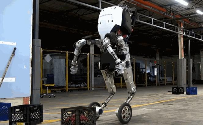 波士顿动力公司最新设计的一款“Handle”机器人长得也像动物,有两只“前爪”和两只带轮的“后爪”。Handle功能十分强大:能够举起足足重达90斤的物体,而且科学家相信Handle实际上的力气还要更大些。