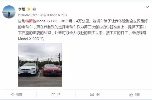 看完这位国外的二手 Model S 车主的心路历程,让我想起了国内的一位车主:李想。