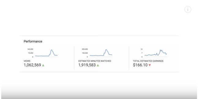 所以接下来的四年里,我在网上传了更多视频,情况越来越好,后来通过品牌交易、商业广告和iTunes上的收入,我们赚了一笔钱,买了房子。但当时有个很大的问题:通过创意挣钱在2013年还是超级奇怪的事情。首先,商业模式一直在改变。每年iTunes下载带给我们带来了58,000美元的收入,这一模式即将被每年带来6,000美元的流媒体取代。流媒体播放比下载挣得少。第二,越来越多的创作者开始在网上涌现,对于这种五位数的品牌交易的竞争也愈发激烈,要知道我们的乐队是靠着这些品牌交易生存下来的。除此之外,虽然我们的视频本身非常有创意,确实为世界创造了价值,我们的粉丝也是非常欣赏和喜欢,但却几乎没有给我们带来任何收入。可以给大家看一下我的YouTube总览的图表,我们可以看到28天里我的视频的访问量为100万人次,带来的广告收入不过是166美元。