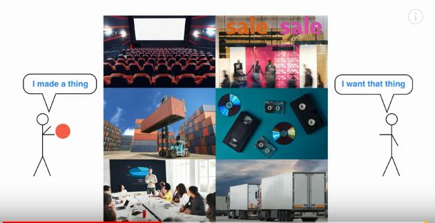 大约一个世纪前,人类知道了如何将声音记录在油蜡桶上,这是留声机的开始。与此同时,我们也知道如何将光记录在一张摄影纸——胶片上,这是电影和电视的开端。这是人类历史上第一次将艺术存储在一件物品上,这非常了不起。过去来说,艺术是虚无缥缈转瞬即逝的,比如说,如果你错过了交响乐,就没法听到管弦乐队的演奏。但是现在,我们能将管弦乐队的表演保存到实物上,之后再听,这是非常不可思议的。事实上,在从1900年到2000年的这一百年间,人类耗费了几十亿、几百亿美金建立基础设施,本质上是帮助艺术家做两件事情:第一,把他们的艺术存到实物上;第二,把这些实物带到世界上想要它的人的身边。你可以想想看,世界上有众多行业就专攻这两个问题,什么货运公司、实体店、营销公司、光盘盒制造商等等。