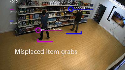 当你走进Standard Cognition的商店时,你可以直观地看到这些技术。商店的一面墙上挂了一个大的显示器,显示着商店内的实时视频。如上图所示,每个人都有不同颜色的标记,无论什么时候你拿起东西,它都会在屏幕上显示一个圆圈和一个标签。
