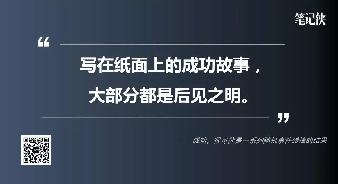 写在纸面上的成功故事,大部分都是后见之明,而真正如何成功的,很可能是一系列随机事件碰撞的结果,或许是根本无法言说的,任何成功都是无法复制的。