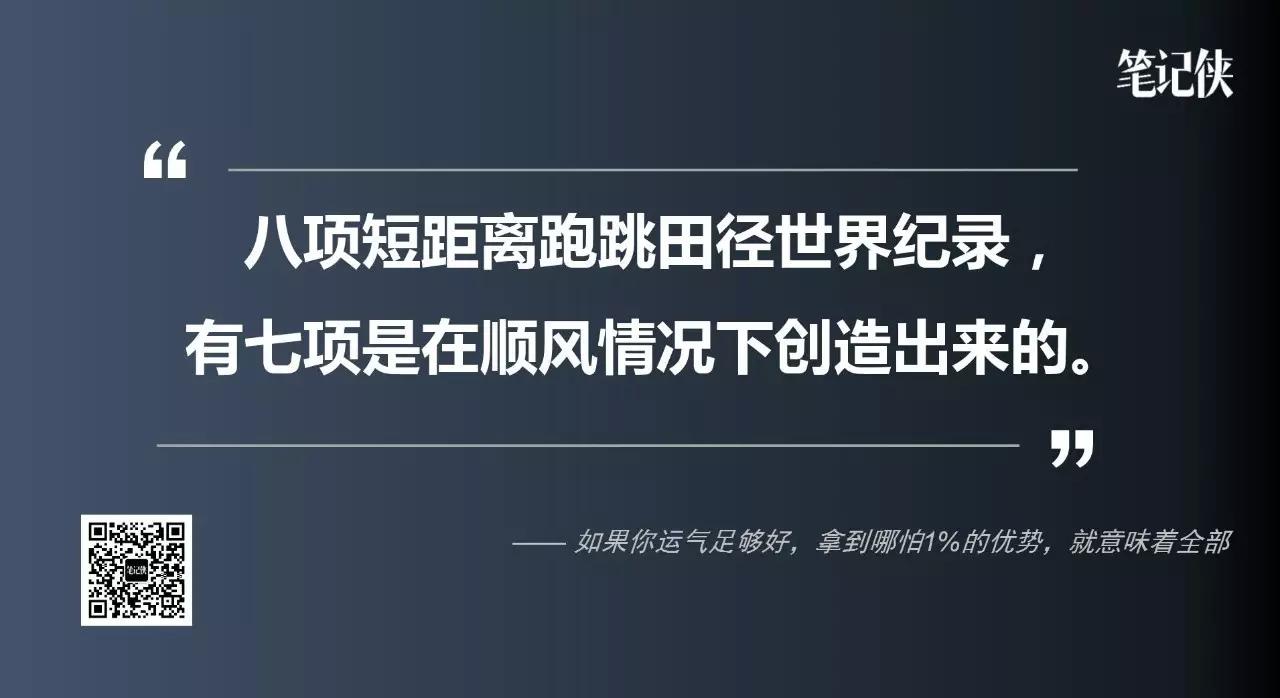 如果你运气足够好,拿到哪怕1%的优势,就意味着全部。同样具有天赋、同样努力的运动员,就差那1%运气,结果是天差地别,鲜花掌声无一例外涌向第一名,而第二名则乏人问津。