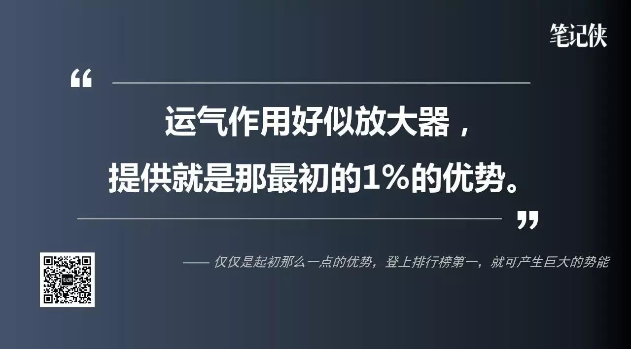 仅仅是起初那么一点的优势,登上排行榜第一,就可产生巨大的势能,创造远超对手的销量。其中运气作用好似放大器,提供就是那最初的1%的优势。