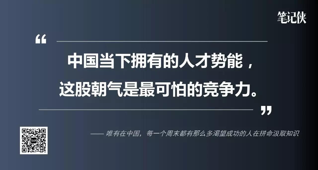中国年轻企业家群体、大量知识工人出现必将产生颠覆性影响。唯有在中国,每一个周末有那么多渴望成功的人在商学院、培训班、讲座、沙龙中拼命汲取知识。