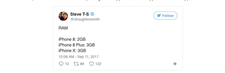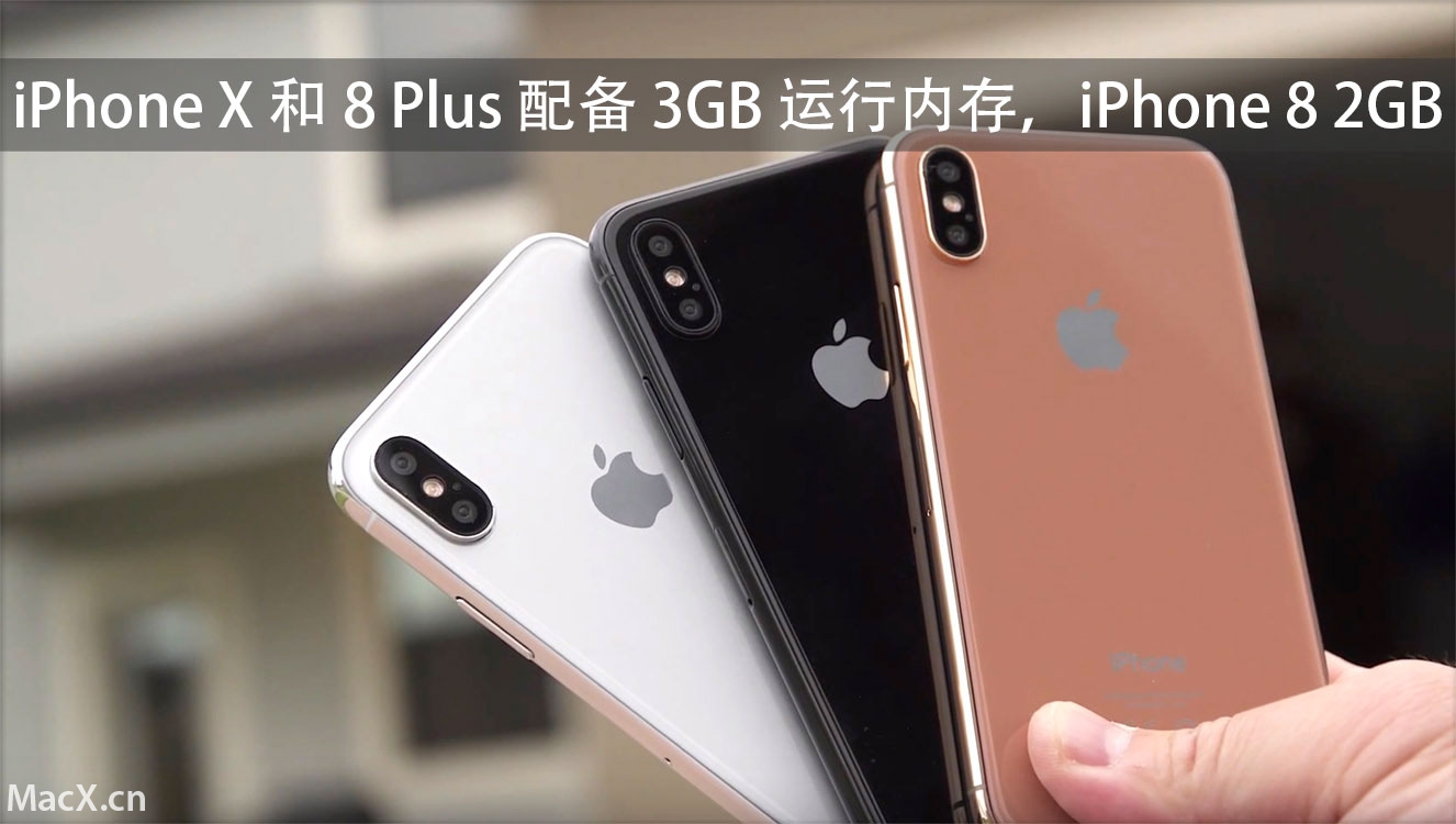 iPhone X 和 8 Plus 配备 3GB 运行内存,iPhone 8 2GB