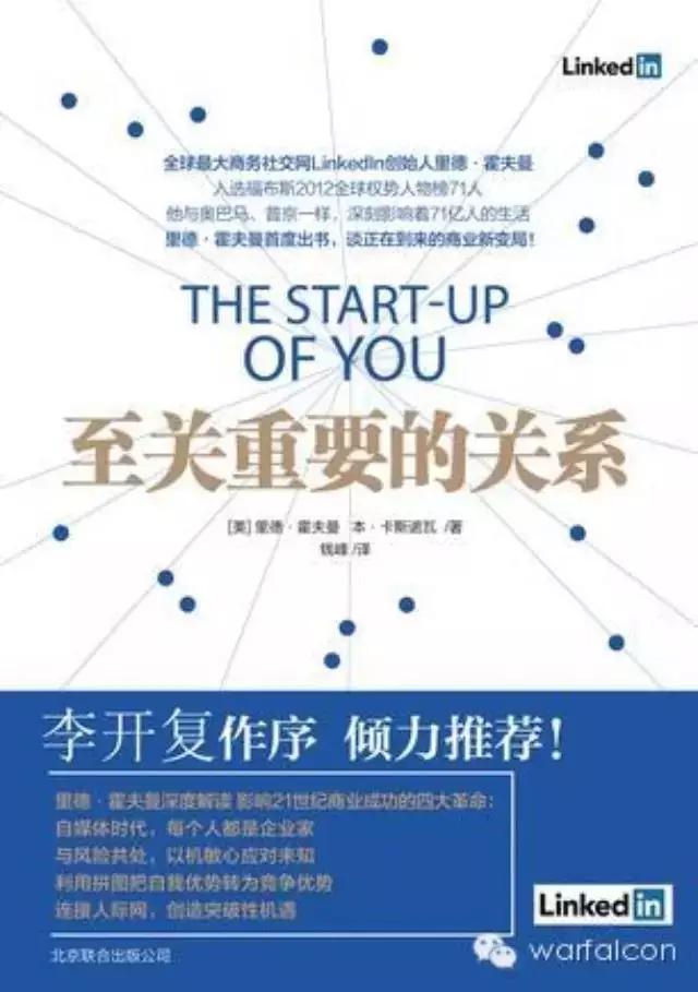 对里德・霍夫曼《至关重要的关系》一书印象深刻,觉得这本书是职业规划中最值得阅读的几本书之一,在最近几年内开始按书中的建议尝试建立自己的人脉,效果还不错,有空会写文章来分享我的心得。