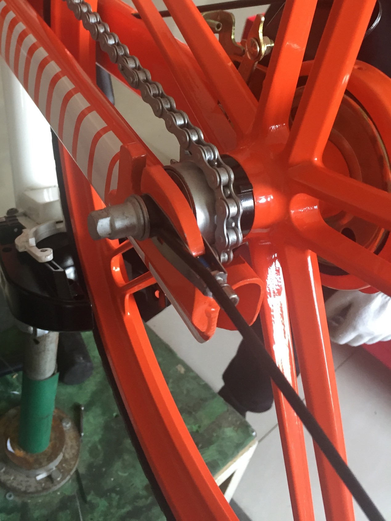 设计:熟悉摩拜的粉丝都了解,链条驱动的摩拜Lite经常是搭配着传统的辐条轮子,搭配五幅轮毂的驱动模式是轴传动模式。而流出的谍照中显示,摩拜这次把链条驱动和五幅轮毂结合在了一起了。这样的设计在骑行体验方面是否会有提升?另外一个问题是,链条部分一般似乎从车身里面穿过,这种直接去掉链条盒的设计是不是为了维修更方便?