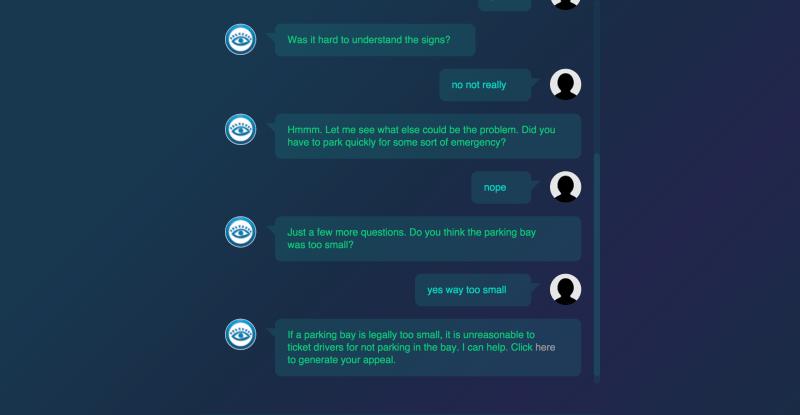 举个例子,2015年纽约市共开出了19亿美元的交通罚单,但Browder认为很多处罚并不合理,大多数司机都因为程序复杂或不知道该怎么做,而放弃申诉;司机是不合规执法最大的受害群体。所以,DoNotPay基于交通处罚申诉表的内容,通过机器人与司机进行几轮问答——例如,信号指示是否容易理解、停车时有没有紧急情况需要避让、或者停车位是不是过小等等——来完善申诉表格。DoNotPay第一代产品2015年上线后,25万份罚单中的16万份被成功挑战,保护了大量司机用户免受处罚。