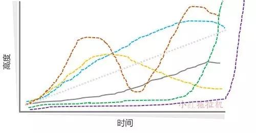 大家更希望的成长,是蓝色线。期望自己在职业初期发展速度超过别人,同时还能在后期保持增速。