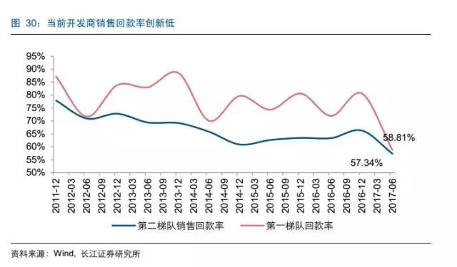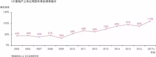 长江证券数据统计,2017年上半年34家重点房企净负债率创历史新高,达到113%,相较2016年全年增加16%,这意味着今年流动性中性偏紧,若有息债务集中到期,开发商将面临无法偿还的困境。