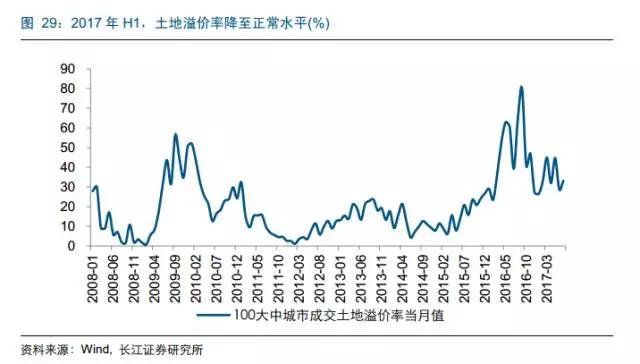 万科在财报中表示,今年第一、二季度的土地溢价率分别为 25.8%和 40.3%,相比去年同期已有较为明显的下降,部分三四线城市土地均价和成交溢价率有所上升。郁亮称“万科从来不主张囤积过多的土地储备,保证两到三年滚动开发的水平就够了,我认为买地需要讲时机。”