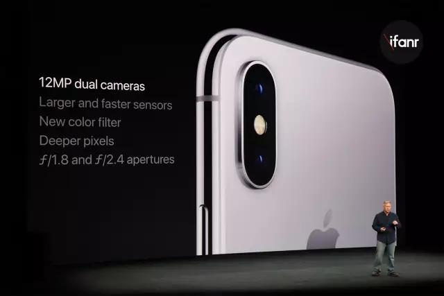 iPhone X 依然是双摄组合,两个镜头一个负责标准焦距,一个负责长焦,除了换用更好的 1200 万像素的感光元件和光圈更大的摄像头之外,iPhone X 的长焦模组也加入了光学防抖和变焦。