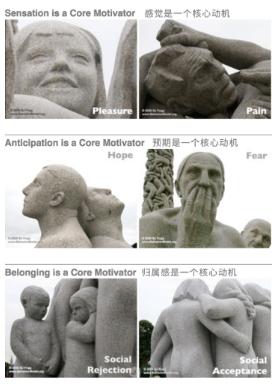 感觉(Sensation):快乐/痛苦(pleasure/pain)喜悦和痛苦是非常有力的动机。