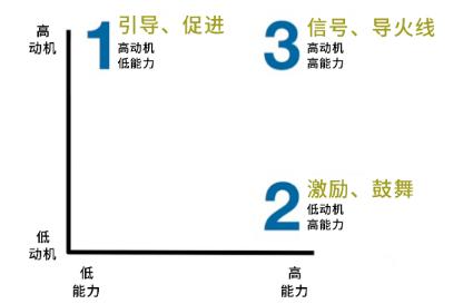 坐标轴内右上角的五角星代表目标行为,它所处的位置表明预定行为的产生必须有足够的动机和能力。促发点就位于五角星附近。