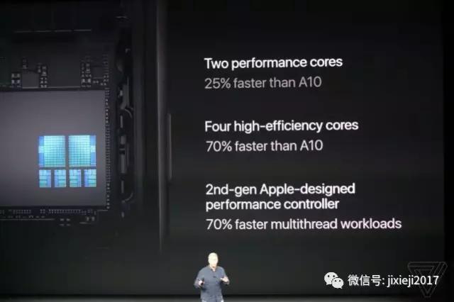 A11芯片拥有六个核心和43亿个晶体管,与A10 Fusion芯片相比,四个能效核心的速度提升最高可达70%,两个性能核心的速度提升最高可达25%之多。当需要提升处理速度时,中央处理器甚至能同时发挥全部六个核心的性能。图形处理器速度提升30%。