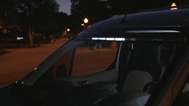 灯条安装在了车辆的挡风玻璃上,可以释放视觉信号:灯条若是一直亮着,表示车辆开启了全自动驾驶模式;若灯条闪烁,那就表示车辆即将加速;如果灯条的灯光移动,意味着汽车要减速或者停车。