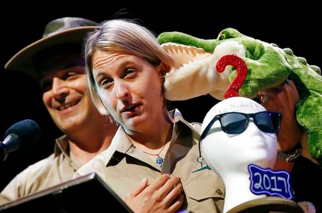 经济学奖:Nancy Greer和Matthew Rockloff,分别来自于澳大利亚和美国,获奖原因是,研究与一只活的鳄鱼接触,会如何影响一个人的赌博积极性。这么说,养鳄鱼的人玩牌要倾家荡产了?