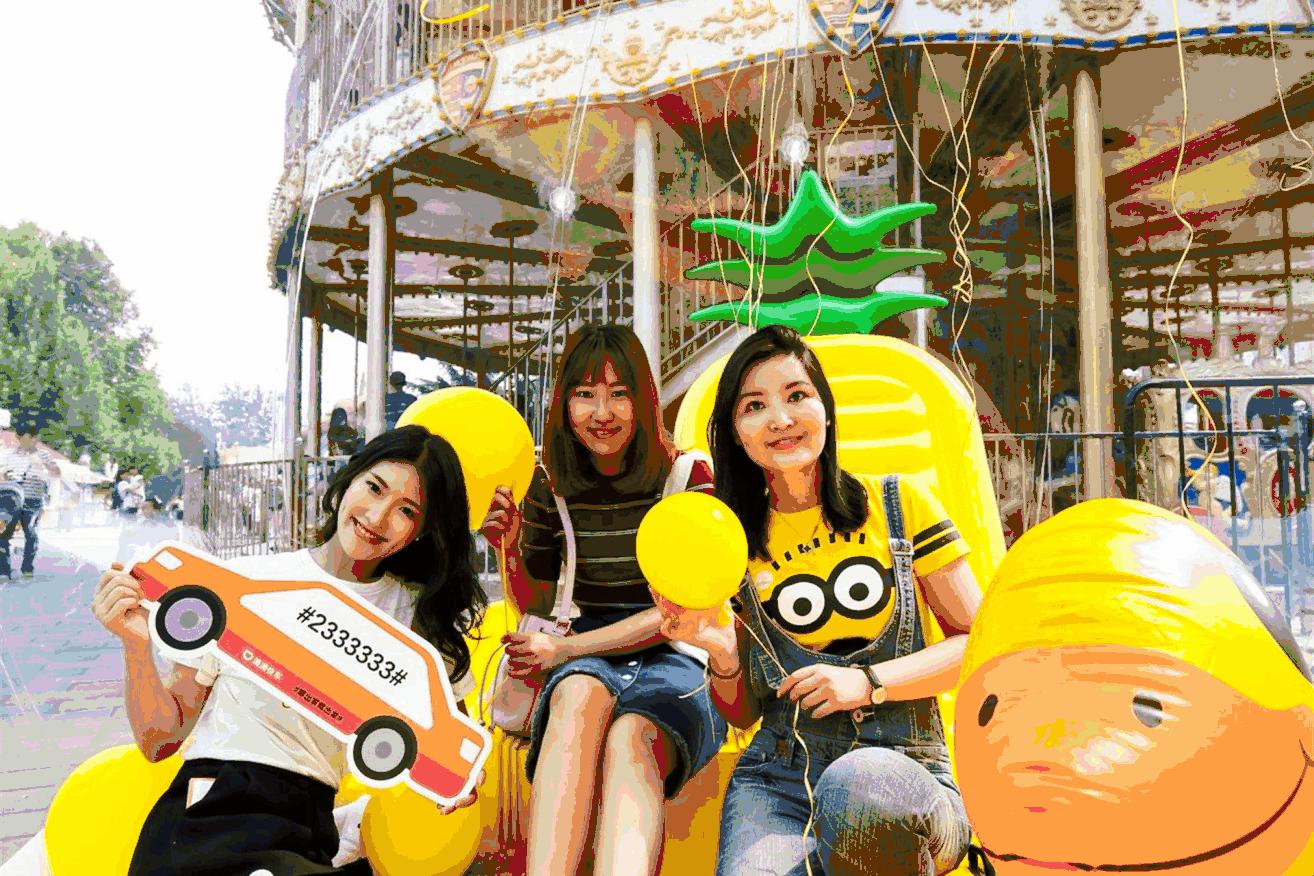 三个人一大早就来了,到处转遍了,现在才知道这边滴滴快车情绪舱可以领票,好气哦!但是那个“少女心舱”还真是很棒!我们照了好多照片呢~刚还问工作人员还拿了一个“周冬雨”(小黄鸭气球玩具),开心!
