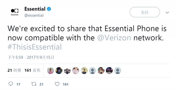 IT之家消息, 由安卓之父安迪·鲁宾(Andy Rubin)亲手打造的全面屏手机Essential Phone在开售一个月之后,在Twitter上宣布他们已经获得Verizon网络的支持。这意味着用户能够在Essential Phone插入V网SIM卡之后获得所有来自Verizon网络的技术支持。