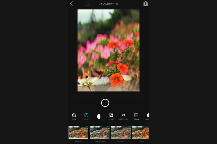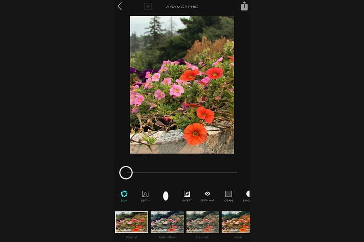除了使用深度数据,Anamorphic还提供许多滤镜,和Instagram滤镜有点相似,另外还有一些基本的编辑功能,你可以调节照片曝光度、增加胶片颗粒效果。