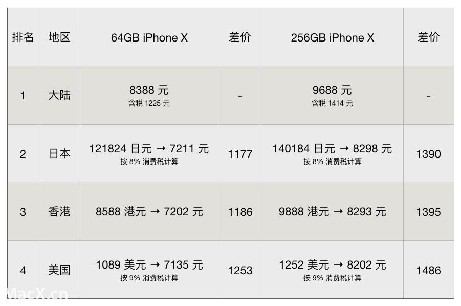 有四个国家的 iPhone X 比中国卖得贵。