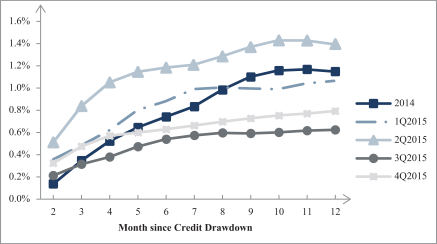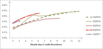 在这种利率下,趣店的借款人还款情况如何?招股书表示,在2016年和2017年第一季度借出的款项,逾期M1+的逾期率保持在0.5%左右或者以下。以下是2016年开始借出的资金的逾期情况。