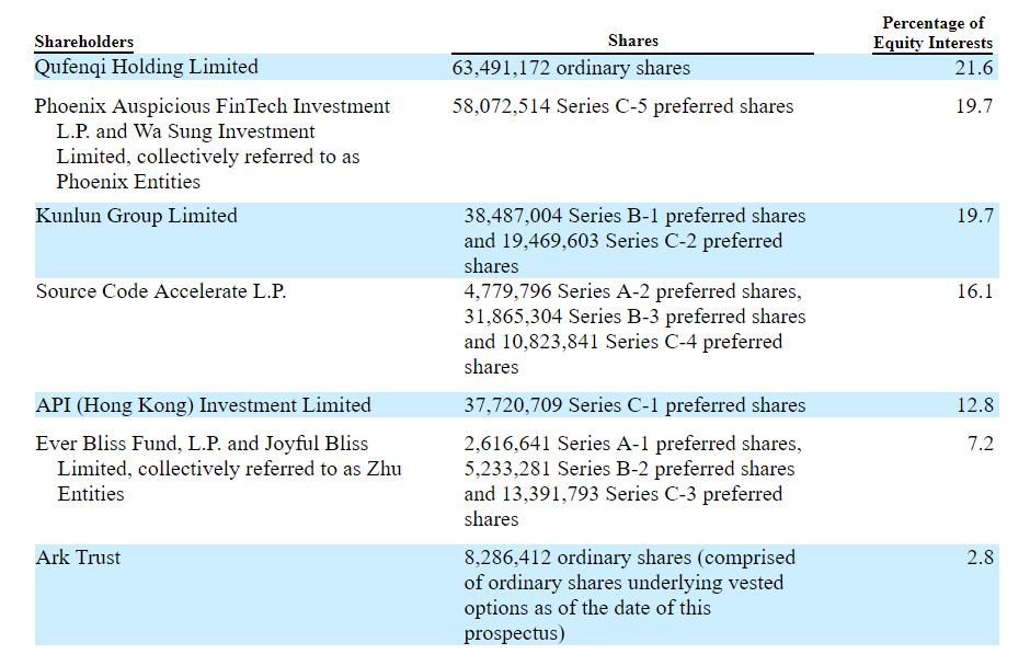 最后,提一下趣店的股权结构,根据招股书,趣店集团(Qudian Inc. )的股权结构如下:
