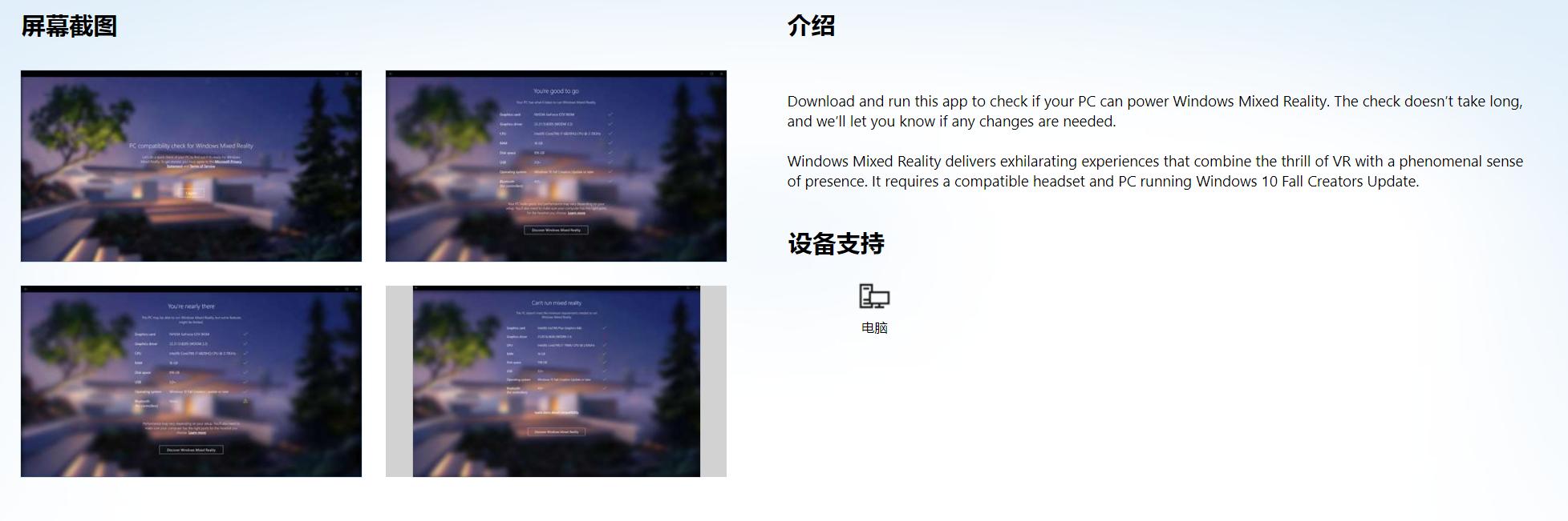 微软Win10 MR PC配置检查工具上架商店